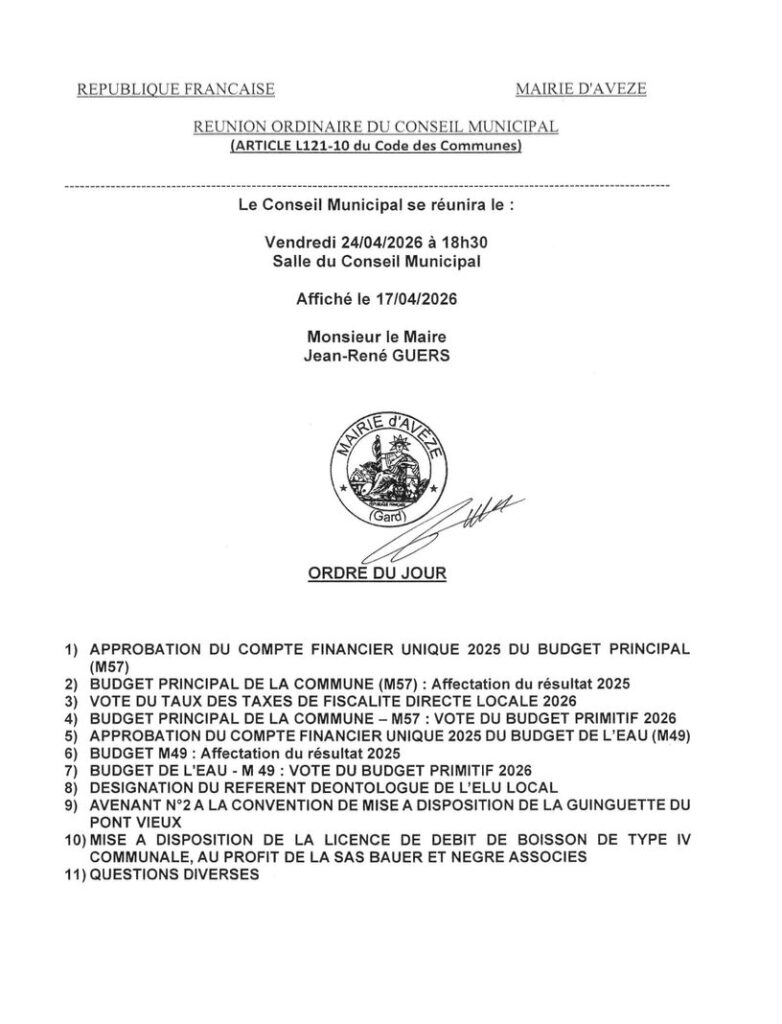 Le prochain conseil municipal aura lieu le lundi 30 mars 2026 à 18h30 en Mairie.